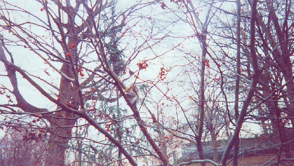 14. Dangerous squirrel is filling its belly by red berries.